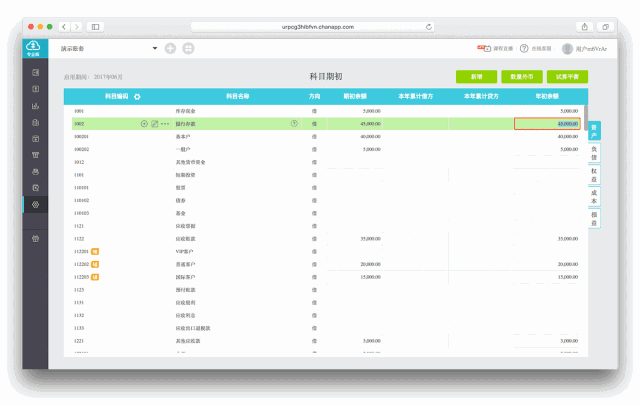 设置完期初后输入期初数据并试算平衡,丢掉会计手册也能工作